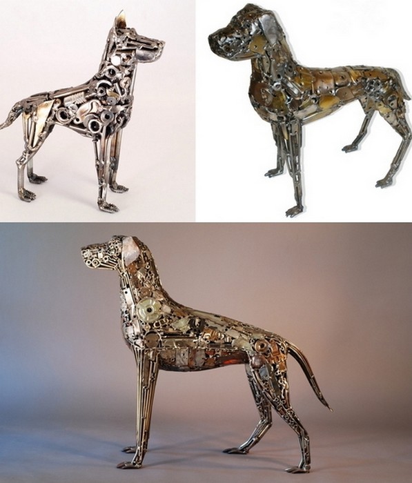 Создавать из металлических отходов скульптуры и прочие произведения искусства - достаточно распространенное занятие. Однако те работы, которые делает скульптор Брайан Мок (Brian Mock), отличаются новизной, свежестью и оригинальностью творческого подхода. Свои работы американец создает из запчастей и других ненужных металлических элементов.