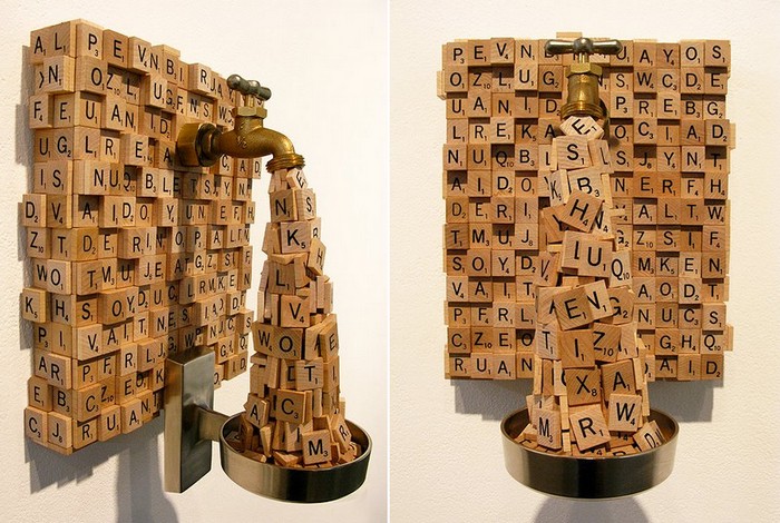 Музами же скульптора являются практически любые предметы, которые могут попасть в поле его зрения. Немного фантазии, немного умелых рук, и вот гитара превращается в абстрактное произведение современного искусства, внутри бейсбольной биты вырастает пейзаж, туфли на шпильках становятся частью роликовых коньков, а из водопроводного крана льется не вода, а высыпаются деревянные таблички с буквами для игры в Скрабл...
